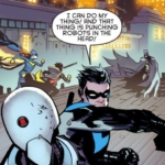 Darkhawk apologizes to Turbo Mickey, and Turbo Mickey graciously accepts the apology. Everyone hugs it out and everything is peaches and cream until Chamber realizes that no one kept an eye on the kids. D’oh!