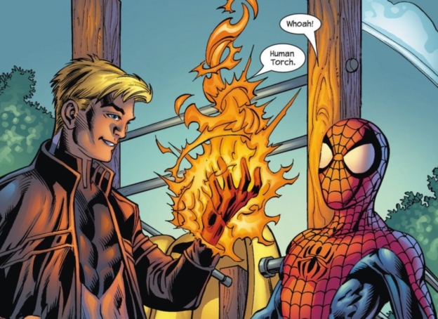 Welcome to Loneliness & Cheeseburgers Presents: Ultimate Spider-Man (Vol. 1), Issue #70 – “Strange (Part 1)”! In the previous installment, after Johnny Storm all but explodes all over a bunch of kids at a beach bonfire, Spider-Man shows up in his life to have a heart-to-heart about being some guy who has powers. They work together to save a babysitter and a baby from a burning building, causing Johnny to go “cool” and “wow” over using his powers to help people. It was all very heartwarming. My heart is so fuckin’ warm right now.