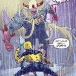 “Hi. I’m here about the offer?” says a somewhat meek individual of the Black persuasion. This is on a Monday. It is spring. Why these two things matter, I do not know yet, but the scene suddenly shifts to Batman fighting a guy wielding two giant machine guns. He looks like a crash test dummy with Roman numerals tattooed around the circumference of his ugly, bald head. It’s Calendar Man, whom I was introduced to back in Batman: The Long Halloween. There’s something about spores and how the calendar keeps cycling and cycling. Batman knocks Calendar Man out cold and focuses on the spores. The damnable spores.